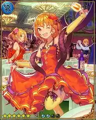Feena (Holiday)=Character Release ゴブリンハンターとして名を馳せるフィーナがこれまたサンタの衣装に身を包んだクリスマスバージョンで登場! Sレアの光属性キャラクターとなります! 「無敵最強サンタカワイイ聖夜スペシャルフィーナちゃん」を自称し、得意の弓矢でプレゼントを届ける彼女のフェイトエピソードでは、ミニゴブやティナ達をも巻き込んだ一大プレゼント作戦が繰り広げられますので、ご注目下さい! |
