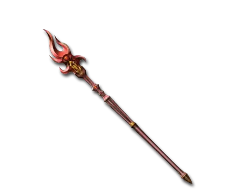 | This staff, fashioned after flames, gives that same form to the power sealed within. Even the clumsiest of swings can easily raze vast swaths of land. |