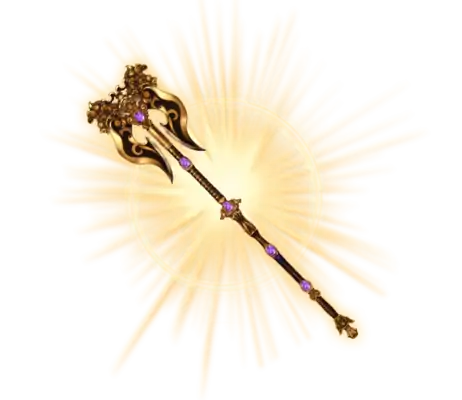 | The jewels embedded in this staff stand for wisdom and humility. When an ocean of knowledge washed over a world that darkness had parched, the people felt humbled by how ignorant they were. Thus they took the first step towards intelligence. |