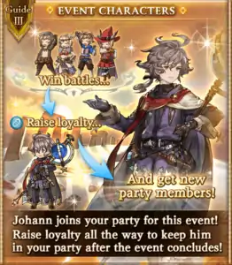 Johann temporarily joins you in the event. Earn 750 loyalty by winning quests and raids with him in the party to keep him after the event ends.