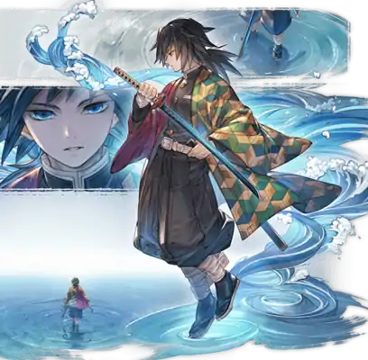| A master of Water Breathing, this quiet Water Hashira created a domain of complete silence in which he reigns supreme. All that trespass into his territory are erased without a sound, never to disturb the calm surface of the water. |