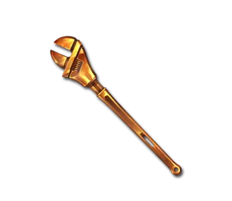 | Although highly praised by mechanics for its incredible precision, this wrench is actually a product of tragedy. A gold brick had somehow ended up in the blast furnace of a steel factory; by the time workers had come up with a way to salvage it, the brick had already melted away. Not willing to let it go to waste entirely, the factory workers used the resulting alloy to manufacture the wrench in mass quantities and put them on the market. To prevent future reoccurrences, it became the "golden" rule to never again approach the blast furnace with a gold brick in hand. To the dismay of many a skyfarer, there appears to be no way to melt this wrench down and revert it to its original brick form. |