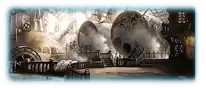 - An area encompassing the central dock's launching bay. Workers watch over the departure of new ships.