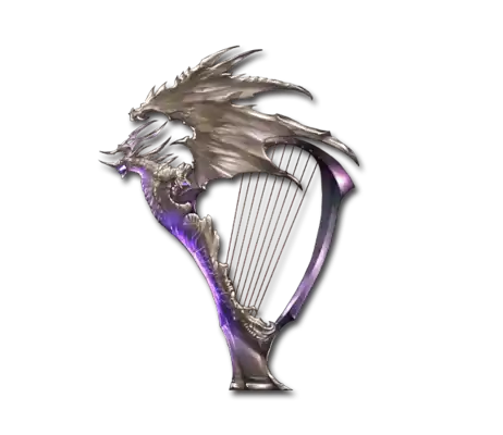 | This harp represents the unique shape of the supreme dragon's wings. A melody plucked on this harp will drive all who hear it to madness and summon catastrophic tornadoes. |