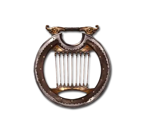 | Once a shield that heard nothing but the throngs of battle, it was given new life by string. Now it protects all with its newfound song. |