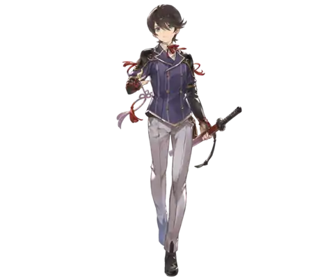 | A young man who deeply admires Izuminokami Kanesada and is a close friend to him. The two have a shared past, and Horikawa wears piercings given to him by Izuminokami. As he was not assigned to this mission, his current duties are unknown. |