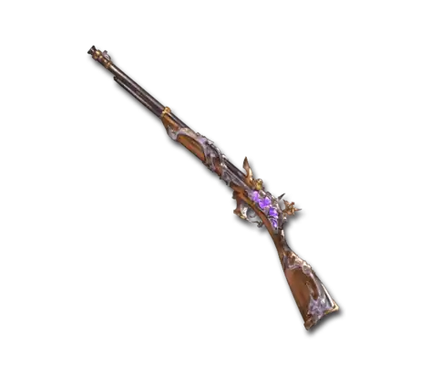 | This rifle has a crystal imbued with sorcery which magnifies the shooter's sight and accuracy. It fires bullets with a faint purple glow. A single bullet is enough to fell even the mightiest of beasts—assuming the hunter can spot the hunted. |