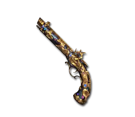 | A heavy handgun inlaid with a distinct golden pattern. By the time the target catches sight of its glint, a bullet will have found flesh and a life will have been made forfeit. |