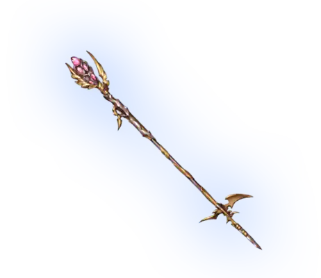 | At a wave it clears hearts of the clouds of doubt, and out from it overflows wisdom like spring. Wield the staff though which the waters of tranquility flow. |