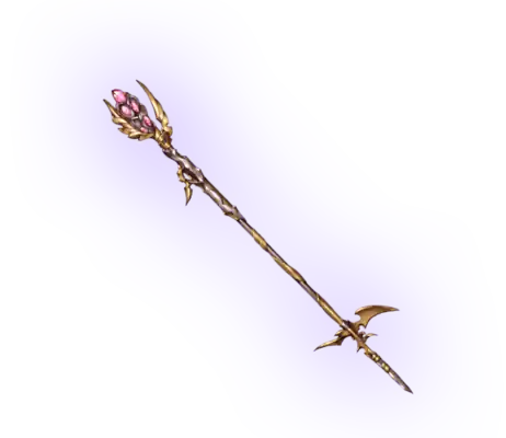 | At a wave it clears hearts of the clouds of doubt, and out from it overflows wisdom like spring. Wield the staff through which the darkness of the abyss pulses. |