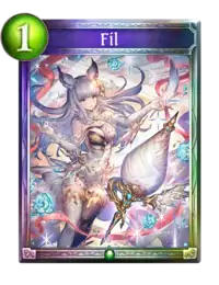 Fanfare: Give your leader the following effect - At the start of your turn, put a Fil into your hand. Put 2 Fils into your hand instead if at least 4 damage was dealt to your leader during the opponent's previous turn. (This effect is not stackable and lasts for the rest of the match.) |