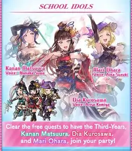 - The in-game flyer for Aqours' concert is a GBF adaptation of the flyer from Love Live! Sunshine!! Season 1.