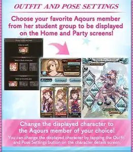 - The Charge Attack and skill names of the Aqours characters are references to song titles and member catchphrases. Same as for the trophies.