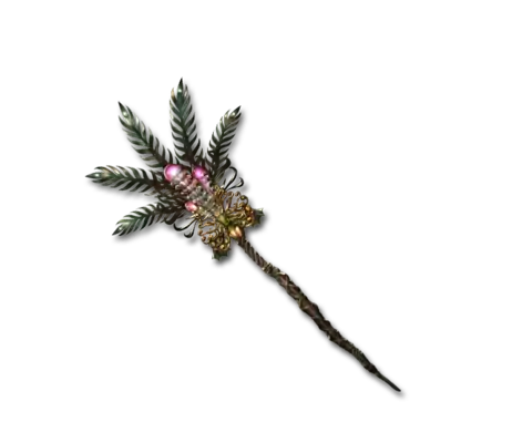 | Created by a famed jeweler known throughout the skies, this staff is used in ceremonies to pray for abundant harvests. The exquisite design of its shaft features grape vines, representing eternal bonds, and pine cones, a motif symbolizing eternal youth. |