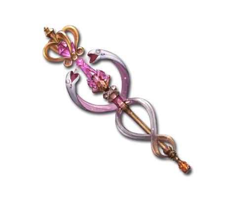 | I see these lovely snakes have you petrified with fright. Their gaze is almost as fearsome as mine! Maybe this staff is too terrifying for a frail mortal to behold. Look, the snake sticking his tongue out is the boy, and this one is the girl. I bet they're exchanging chocolates today too. |
