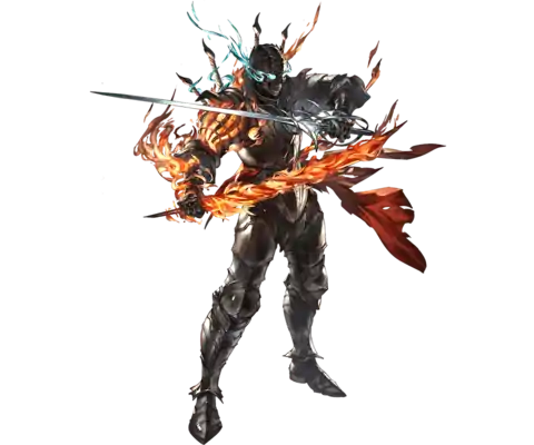 | He appears from thin air—a skeletal duelist with an unquenchable thirst for battle. A chance meeting with a certain captain reveals that his mortal rival's spirit lives on; he promises a passionate duel with souls on the line. From his fragmented memories come visions of self-sacrifice to secure the safe retreat of his rival and the princess. He exemplified true chivalry even as he greeted death. |