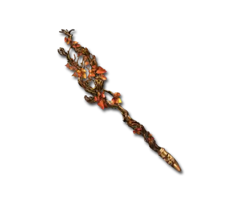 | This staff was born from the entwining vines of a sacred tree that grew from blessed, motherly soil. As the seasons pass, the life force within it causes flowers to bloom along its surface. It may have the power to cure a forlorn heart. |
