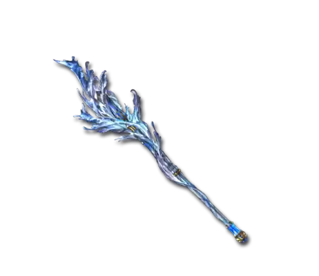 | A staff of the most exquisite workmanship. Its body looks to be a plume of dancing water, and in those blue petals is nestled a blessing from the sea god. Sailors say that the staff can calm raging seas—you only need pray to it. |