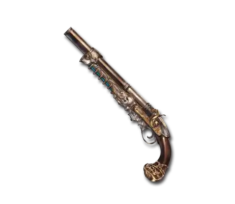 | A favorite of the lawless Odajumoki crew. Carved on to the barrel of the gun is the grim smile of Death incarnate. Its metal fittings recoil in laughter with each piece of lead unleashed. |