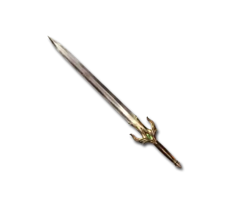 | This blade is made from simple materials. The well-worn leather grip fits comfortably in the hand, making it ideal for those taking up a sword for the first time. This is a solid weapon with great comfort and reliability. |
