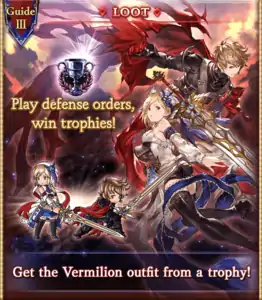 Earn the event trophy Crimson-Eyed One to unlock a new outfit for Gran/Djeeta. This outfit can be worn by any class that uses Sabres.