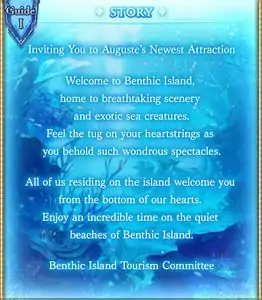 An island of the Auguste Isles. Although its seas are relatively free of fish, it is home to a wide variety of macrobenthos—organisms such as shellfish, octopi, sea urkins, and more. On land you'll find nothing but fishermen, at least until Sierokarte's eagerly-awaited tourist development plans come to fruition.