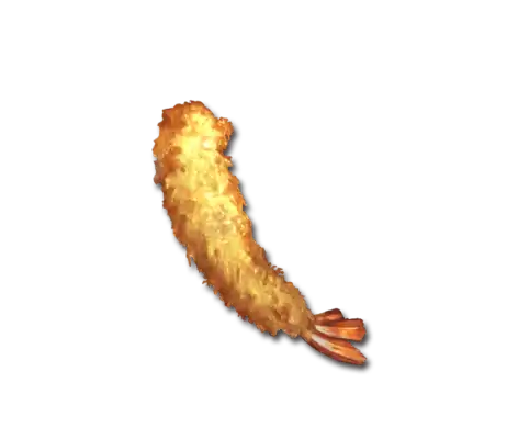 | A blacksmith toiled long into the night, his hammer ringing against the anvil until he was barely clinging to consciousness. When he came to his senses, he found this fried prawn-shaped sword on his forge. What looks like a crispy, battered shell is made up of tiny blades which can inflict hundreds of slicing wounds with every swing. The blacksmith's boss, seeing this bizarre creation, realized he had been working his employees too hard, and gave them all a vacation. |