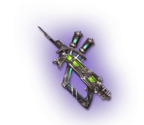 | Once used by a legendary physician who could ward off even the Grim Reaper, this syringe gun can act as either the greatest elixir or the deadliest poison depending on the amount of medicine injected. |