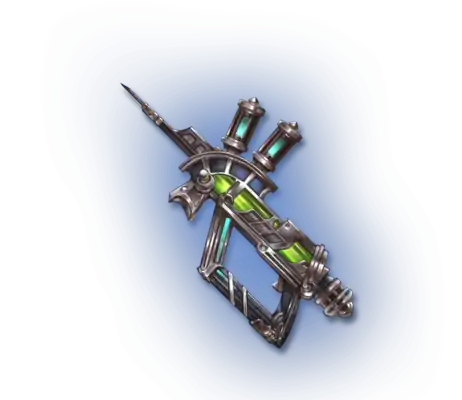 | Once used by a legendary physician who could ward off even the Grim Reaper, this syringe gun can act as either the greatest elixir or the deadliest poison depending on the amount of medicine injected. |