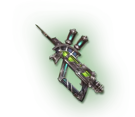 | Once used by a legendary physician who could ward off even the Grim Reaper, this syringe gun can act as either the greatest elixir or the deadliest poison depending on the amount of medicine injected. |