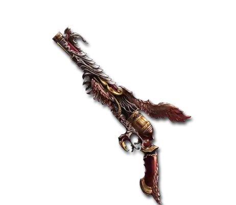 | Its wings symbolize freedom and courage. All skyfarers long for this gun at one time or another, but it is not easy to obtain nor operate. |
