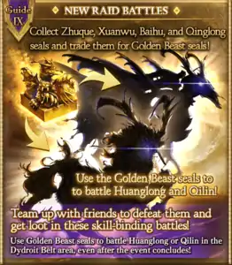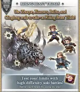 - Rising Beast Trials are high-difficulty solo battles against Zhuque, Xuanwu, Baihu and Qinglong.