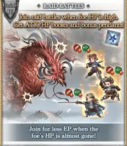 - Get a boost to ATK and max HP based on your rank for event raid battles.