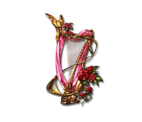 | A harp formed from the essence of a rose that blooms in flames. When played, the brilliant timbre and harmonic fragrance of the rose resonate joyfully throughout the land. |
