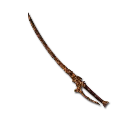 | This great katana was once the determining factor in duels to the death, but now it overflows with impurities and has sunk into darkness. Its dulled blade carries only the faintest memory of a cutting edge, and that too will soon fade with time. |