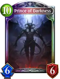 | The Prince of Darkness grins knowingly as if to say to mortals, My cataclysmic powers will be yours. Simply use them to plow iniquity and sow trouble. |