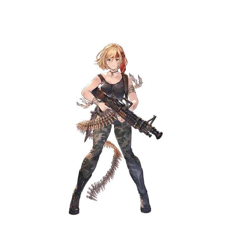 ⚠️This weapon is acquired from the Premium Draw. It will require the use of duplicate copies or Damascus Ingots to uncap to its full potential. It may be difficult to get this weapon in the first place, and will be expensive to bring to its full power. Consider whether you can use a farmable replacement instead. - The "Femme Fatale" skill gives a chance to stack Def Down on every attack, effectively acting like an extra Full Metal Jacket bullet effect for every bullet slot. Loses significant damage in comparison to