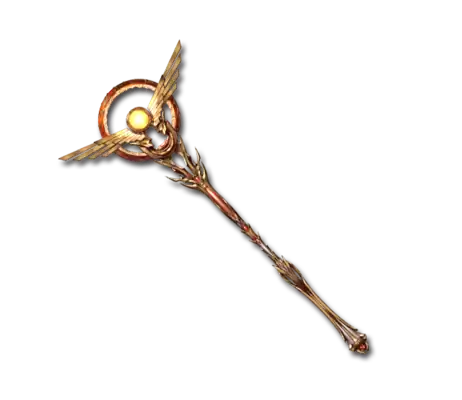 | A golden crosier imbued with the divine power of the sun, shining light across the entire Sky Realm. Raise it high above the heavens to send thousands of rays beaming through the clouds, and shake it to break up the endless sea of clouds. The infinite miracles borne of its endless compassion are truly a godsend to mankind. |