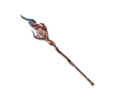 | Its blade burns with a dark, sweltering flame. The sphere resting at its center blazes hot and black like a sunspot. This fiery spear represents the fullest realization of searing sorcery, turning swaths of foes to ash in an instant. |
