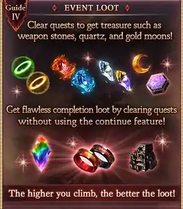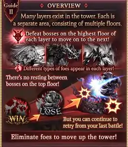 Tower of Babyl is a recurring limited-time event where your parties battle powerful bosses on each floor to climb the tower. Players can swap between three different parties during battle. Loot can be obtained by clearing quests and completing missions. More floors will be added in each event iteration.