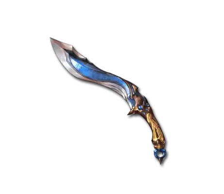 | What's so wicked cool about this stabby thing? I'm glad you asked! I've calculated the angle of the curve to the nth degree so that it not only looks awesome, but also so it makes that sweet ""fwoosh, fwoosh"" sound—like wind cutting the air—every time I swing it! And you've seriously gotta check out the colors on this thing! The rich mix of gold, brown, and black leading into the shiny blue tip! Just imagine me holding this thing in action! Oh! Talk about wicked cool! |