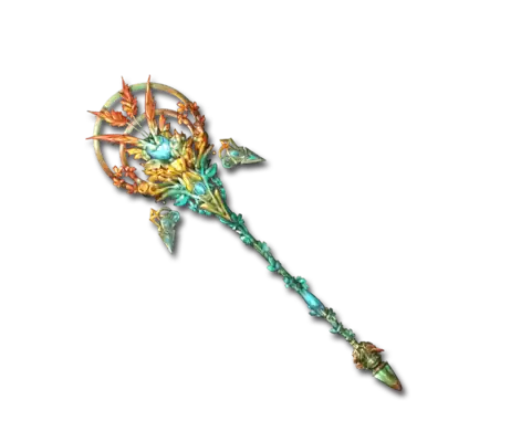 | A staff that harbors the magical power of many enchanting spirits dwelling in the forest. Its exquisite design tugs the heartstrings of those with a passion for beautiful things. In fact, the weapon has become so popular that countless counterfeits now circulate the marketplace, causing a fair number of disputes. |