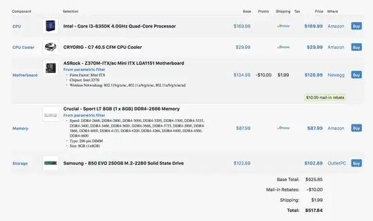 I'll be leaving out case recommendations from these options; choose whatever you think is best. If you end up needing an SFX PSU, use this list and get whatever wattage you need; if you need an ATX PSU, use this list. CPU cooler is likewise dependent on case selection, but I'll be using the stock cooler as reference, or the Cryorig C7 when not applicable. I'm allocating about $130 to these parts from the rest of these builds.