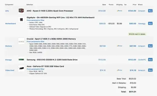 - RAM here is a bit funny. Normally I recommend "get whatever's cheapest!", as RAM speed (for most workloads) doesn't make enough of an impact to justify the additional price that comes with faster memory. However, because we'll be relying on integrated graphics for a little while, I decided the fairly low bump to 2666 was worth it.