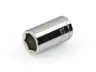 Use a 7/16 inch socket with a 3/8 inch wrench to remove the two bolts and accompanying nuts securing the throttle control assembly from the handlebar.