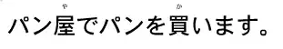 In the given image, ~や (~屋, regular や)is a suffix that means shop. So bread shop → bakery. In this case, で marks the location where an action takes place. So the given image reads, more or less, I buy bread at the bakery. Two more examples