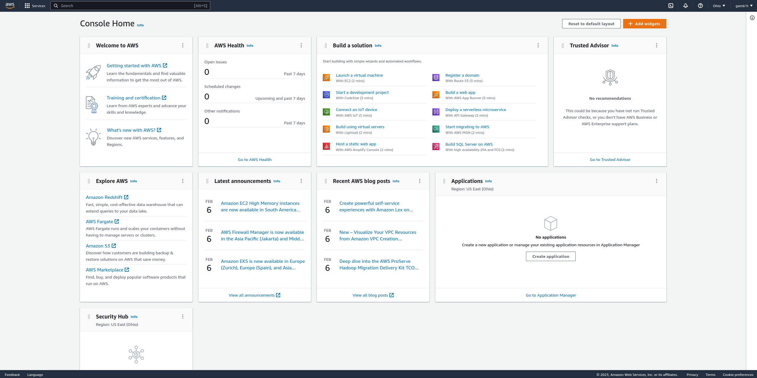 The first thing we do is create AWS account. Only once we see the following screen are we able to proceed with setting up our instance.