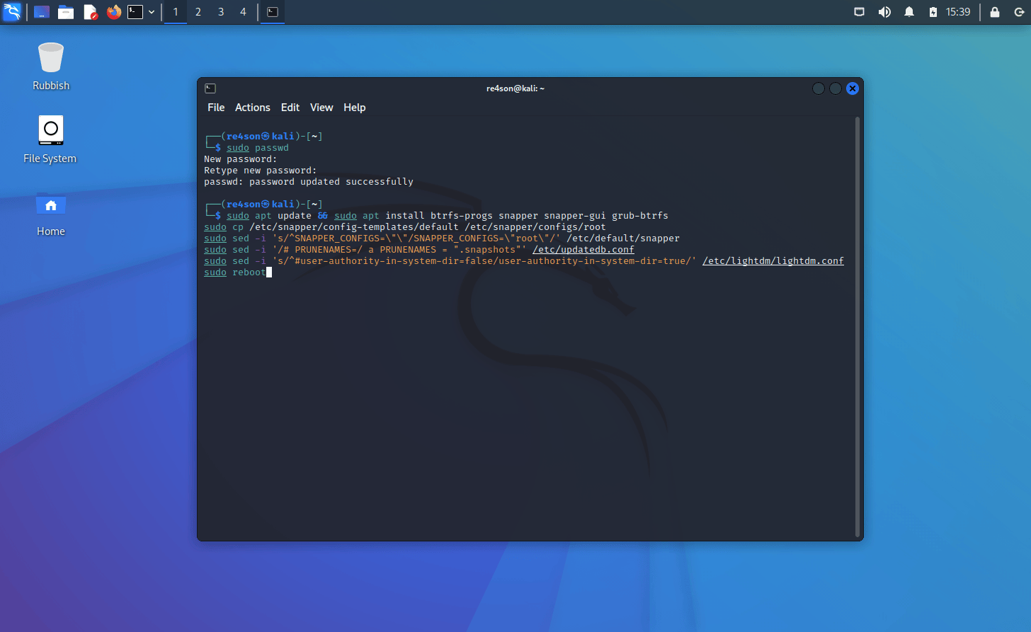$ sudo apt update && sudo apt install btrfs-progs snapper snapper-gui grub-btrfs