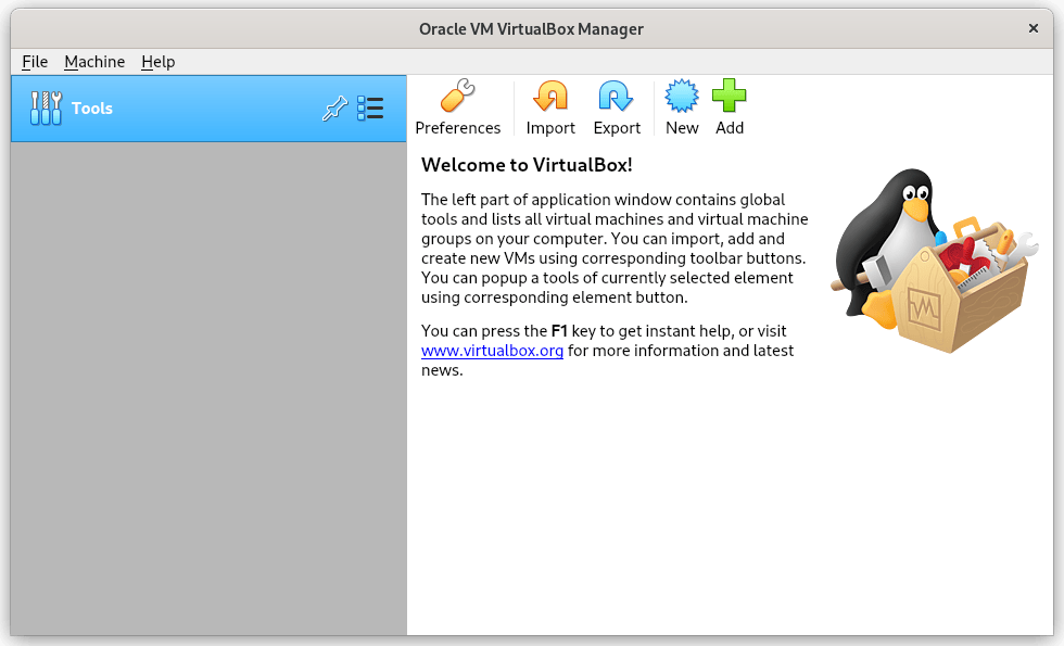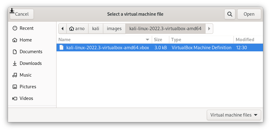 From here we will be wanting to select ‘Add’. We then navigate to the location our VM is downloaded and find the .vbox file: