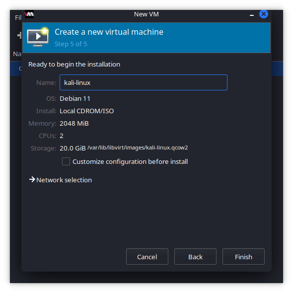 Kali inside QEMU/LibVirt with virt-manager (Guest VM)